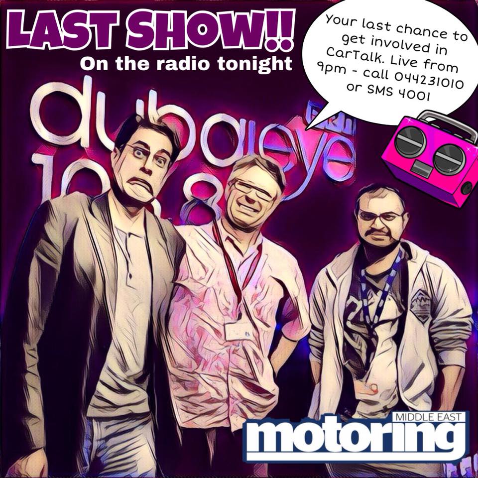 And whilst repeats of CarTalk will continue throughout the summer on Dubai Eye 103.8FM, standby for news of our voices back in your ears later this year!