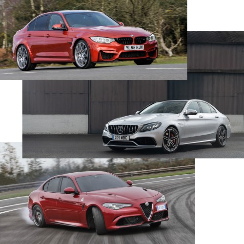 Solid and dependable German muscle saloon, it sits midway between the Alfa and the BMW M3 in terms of power, but outranks them for prestige. Most expensive though.