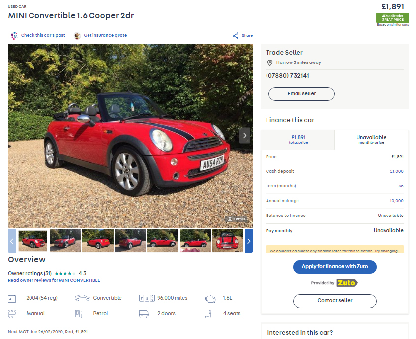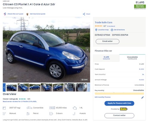 Well you don’t have to. There’s plenty of great propositions for suntan-soiled wind-in-the-hair motoring available for under £2000. Oh yes indeed! And here’s a few astonishing examples that caught my eye.