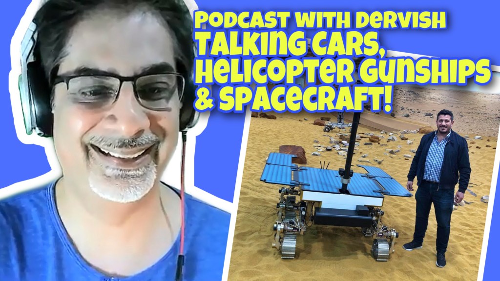 As well as being the owner and creater of a podcast called “Full Throttle with Dervish” he has a degree in Aerospace Engineering and has worked on some of the major Space and Military platforms including , Mars Rover, Solar orbiter, Eurofighter, Harrier, Tornado and Apache gunships. He is of course, also a massive petrolhead!