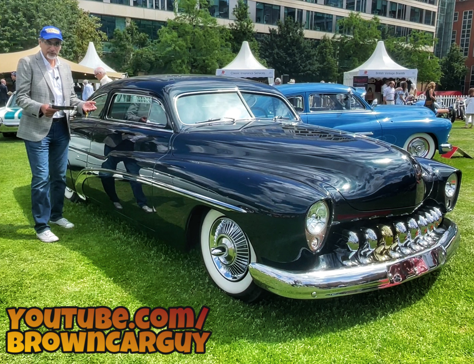 At the 2021 London Concours checking out the extraordinary modified and customised classic American cars in the ‘Kustoms’ category. The exquisitely presented Ford Business Coupe with chrome ‘flipper’ hubcaps, won the car of the category, although our favourite was the Planet Voodoo Mercury Coupe with tattooed dashboard and reptilian leather upholstery. Plus a spectacular Chevrolet El Camino that goes on forever and has fins sharp enough to slice bread! #BCGLondonConcours #BCGEvents Thanks to Reza Adil for helping me film this!