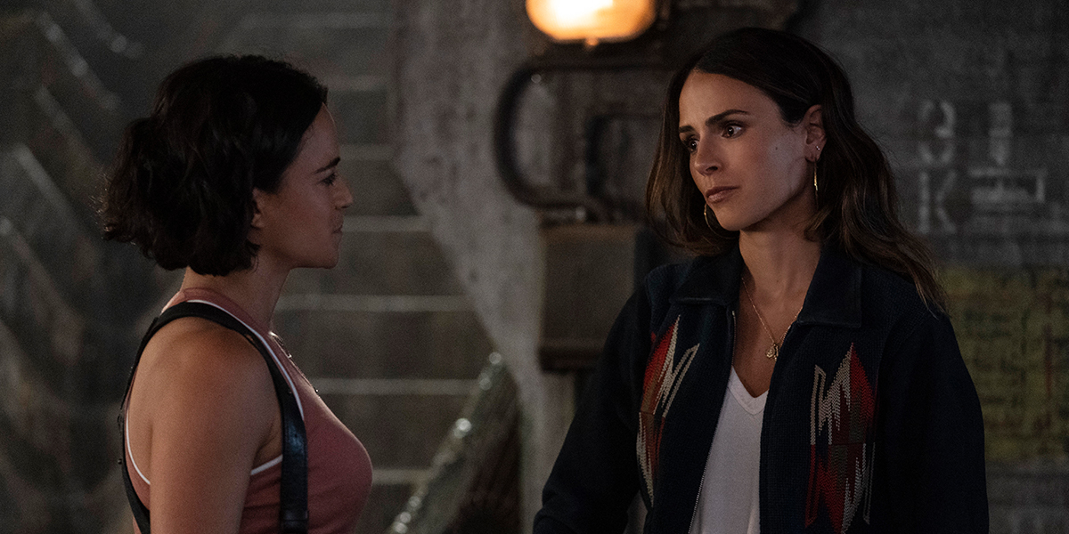 She’s not the only one that’s bored, because the late Paul Walker’s character, Brian’s wife Mia – that’s Jordana Brewster – also turns up, ostensibly because she thinks she might have some pull with brother Cena – even though he, at one point, happily leaves her, Dom Diesel and all the gang to be killed by endless hoards of henchmen.
