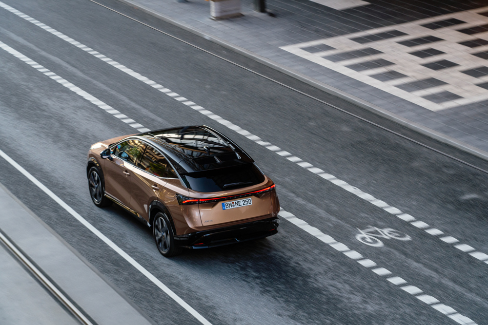 There’s two main trim levels, Advance and Evolve and prices start from £43,845 rising to £56,290. We tested the 160kW 63kWh Ariya Evolve priced at £47,840. Standard equipment include 19-inch alloys, Bose 10-speaker sound system, Intelligent route planner that figures out the best time and places for you to charge and that big glass roof.