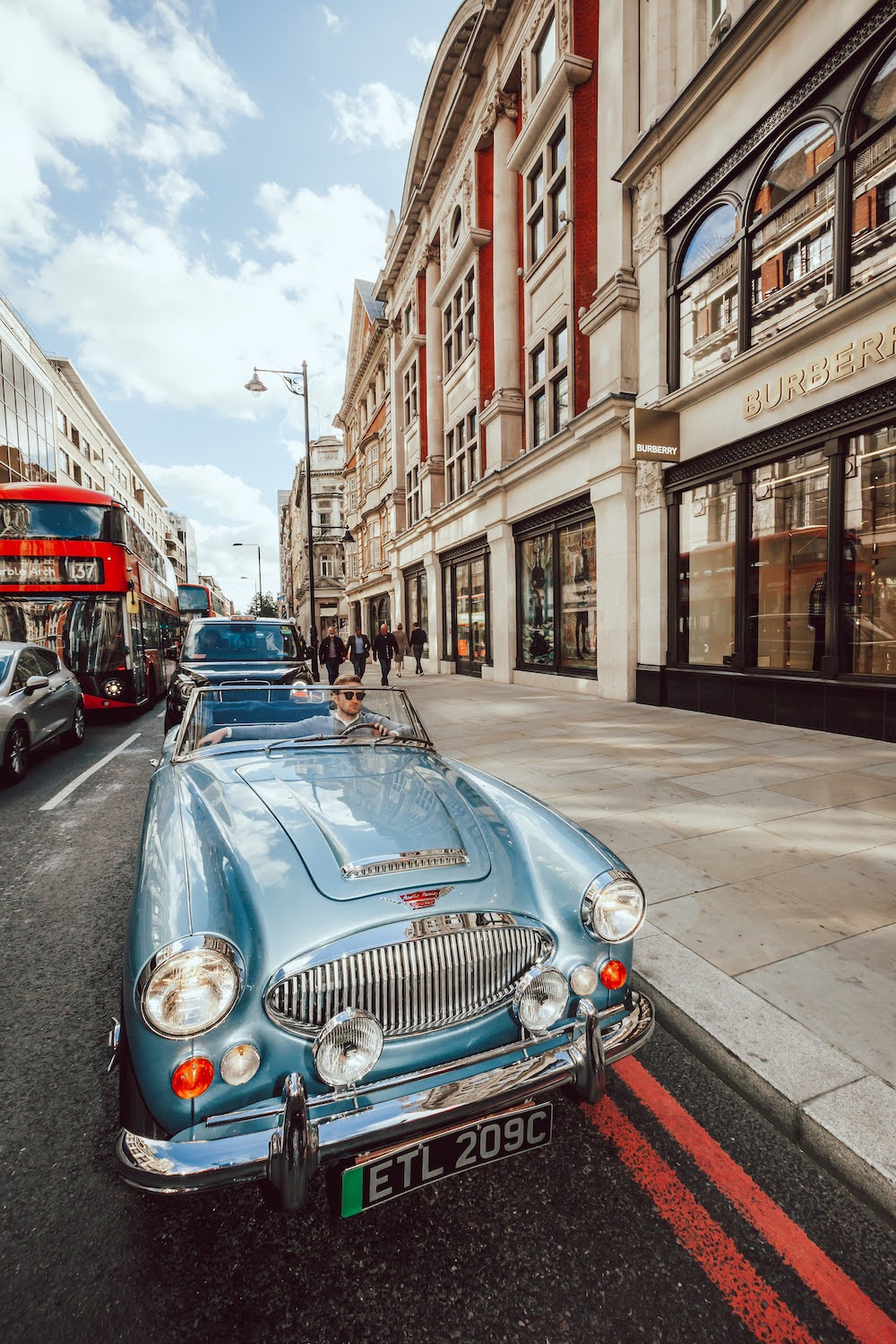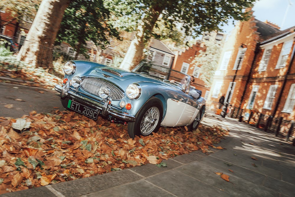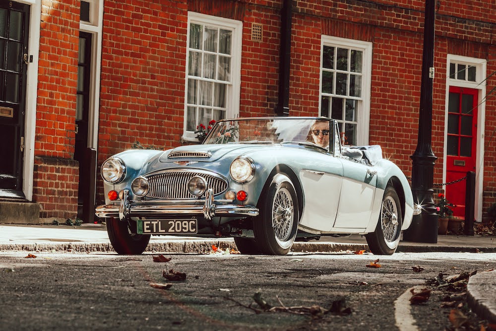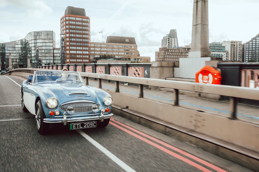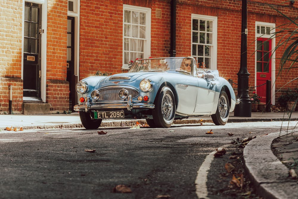 A pair of stunning and beautifully restored Austin Healeys sit awaiting my attention. The Blue car is a 1965 Healey 3000, and the white car is a 1957 100/6. It’s a bright sunny day, we’re in the very heart of London, and I’ll be driving both. But these aren’t ordinary classic British roadsters. They’re hiding a secret.