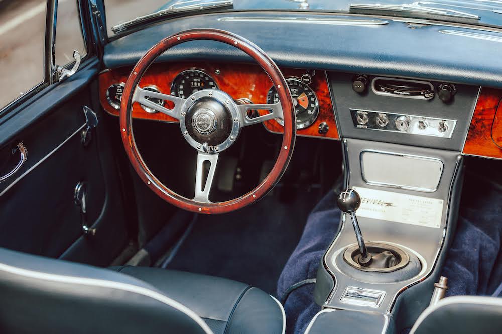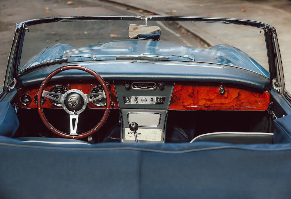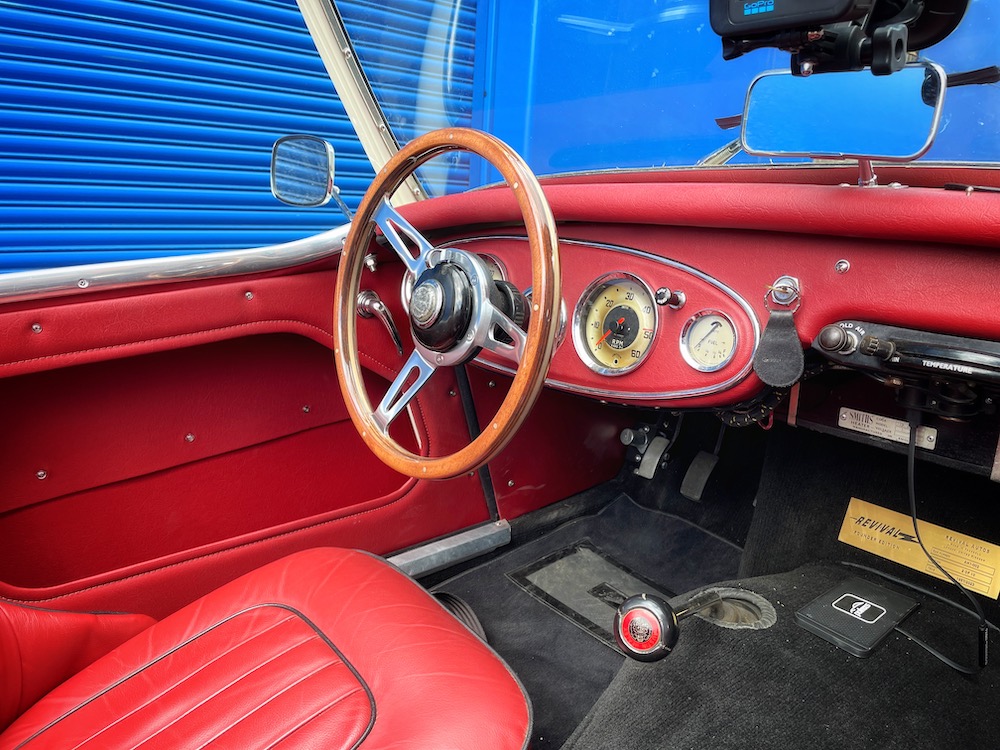 Which is annoying in the 100/6, because I really want to. Not only has my confidence grown behind the wheel of this car, but also the wheel is further away, thanks to their being physically more room in it. Apparently, the folding roof of the 3000 robbed the Healey’s cabin of some space, which is not the case in this car.