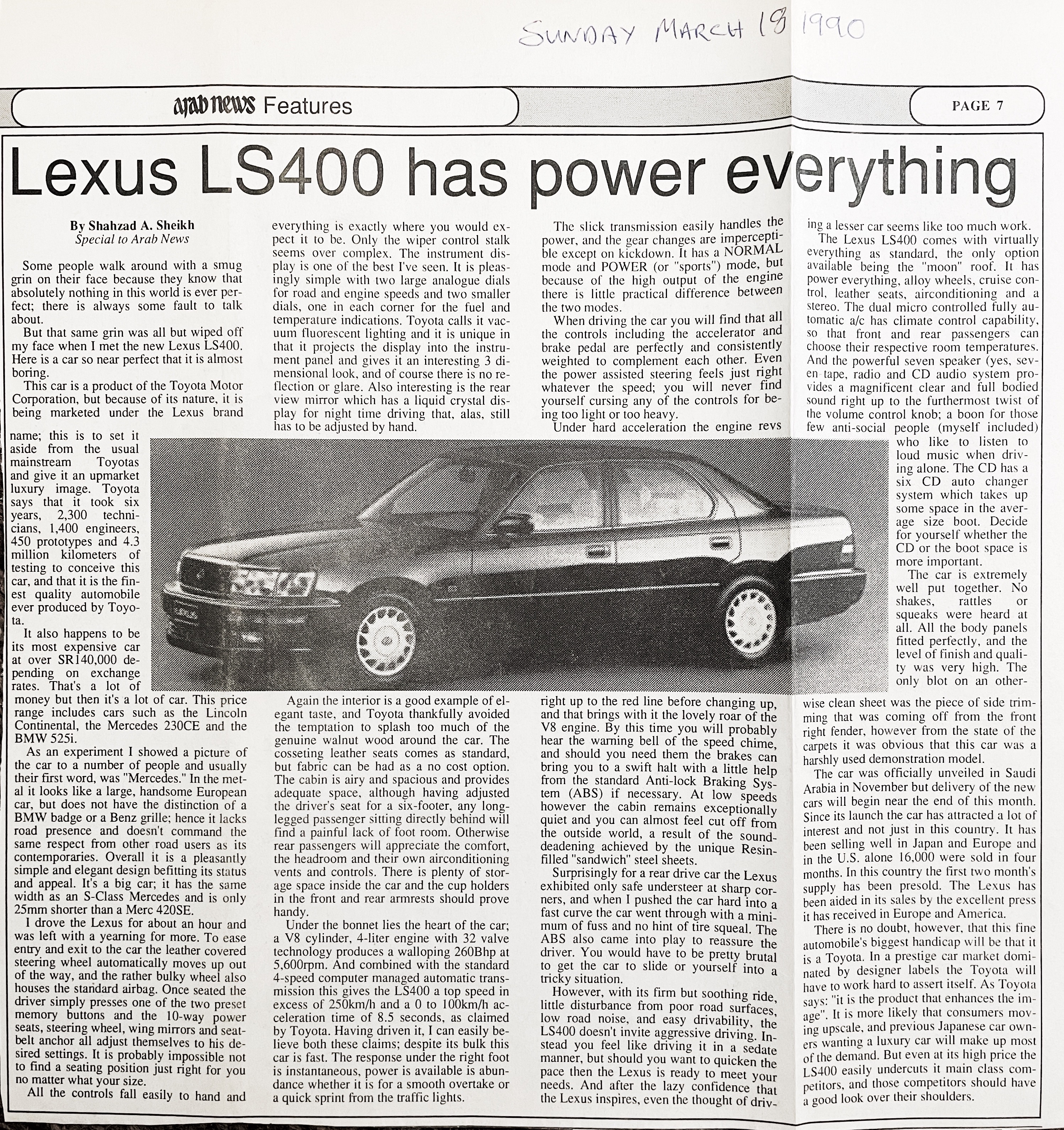 Looking back at my review of the all-new Lexus LS400 luxury car that was an absolute game-changer in the luxury car segment, it was launched in Saudi Arabia in November 1989, but went on sale around March 1990. (see my original review below too).