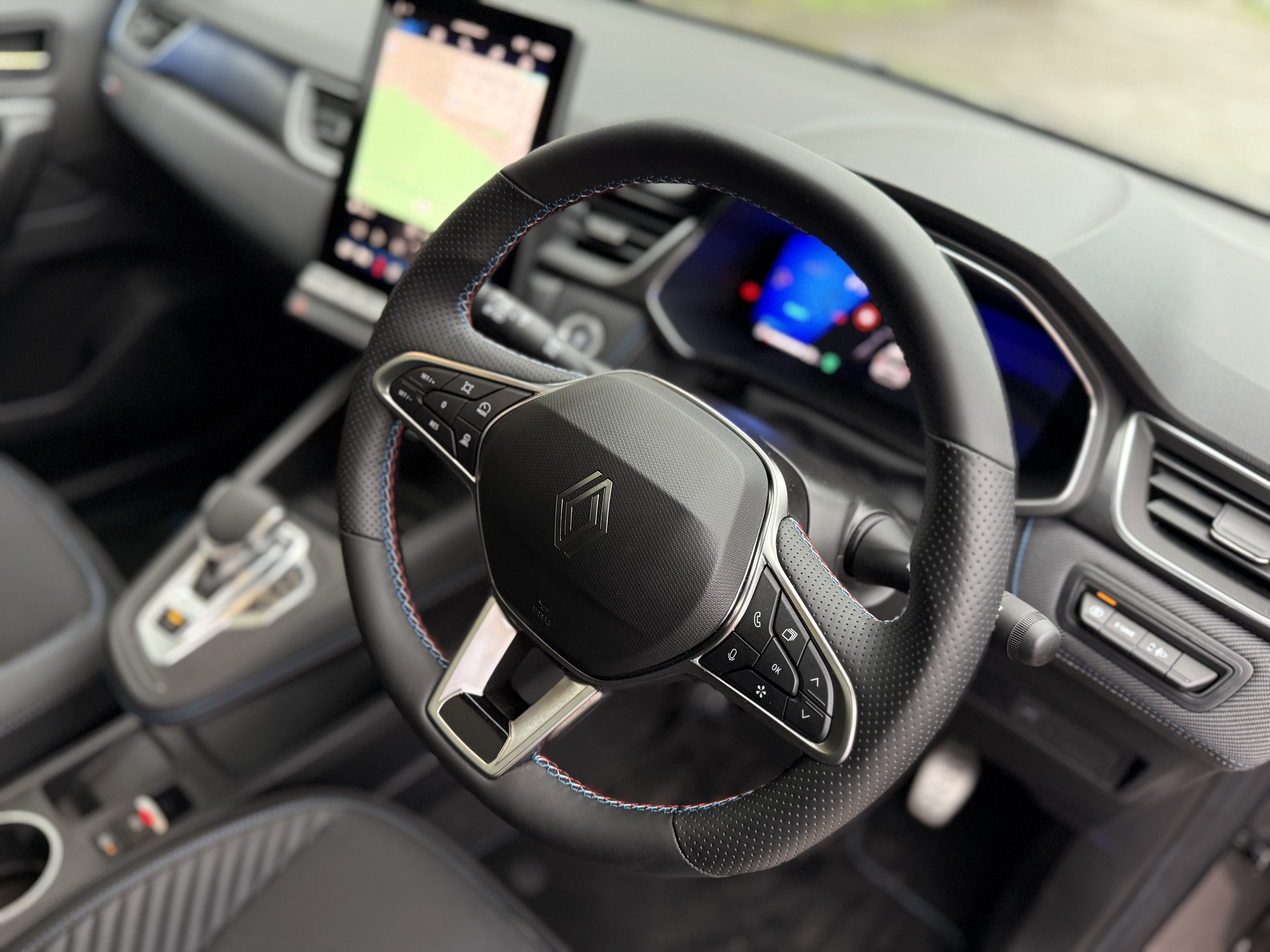 Inside, the Symbioz blends style with practicality. The 10.25-inch digital driver display and 10.4-inch infotainment system with built-in Google services provide a high-tech feel, while the Harman Kardon sound system ensures crisp audio. Material quality is solid, with a mix of soft-touch surfaces and chic trim.