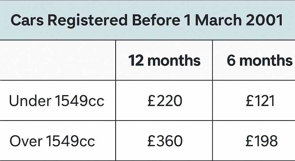 If you’re running a vehicle registered between 1 March 2001 and 1 April 2017, you’re still in the old CO₂ banding system – A through to M – and you’ll still feel the squeeze.