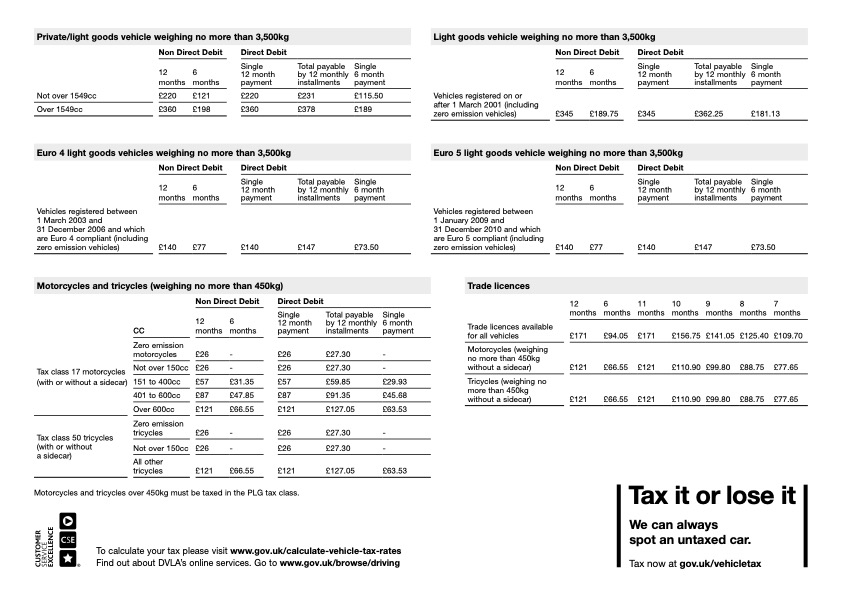 I’ve got all the rates for cars, EVs, vans and bikes