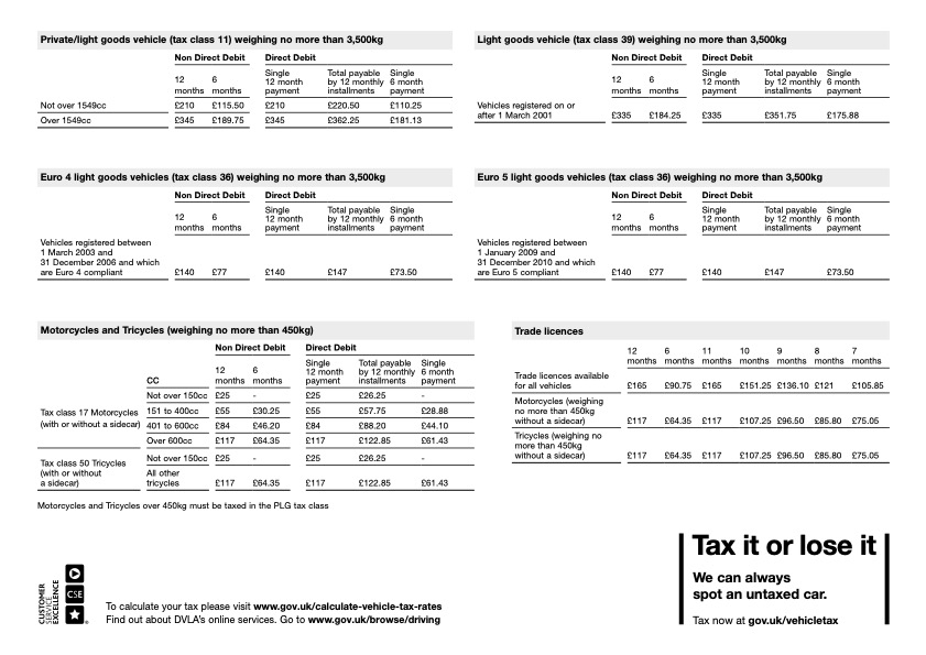 I’ve got all the rates for cars, EVs, vans and bikes