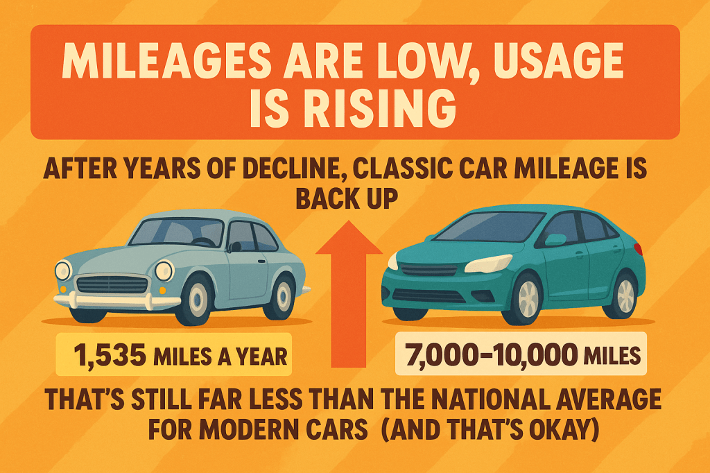 And let’s not forget, classics are driven sparingly. On average, just 1,535 miles a year – compared to the 7,000–10,000 miles your typical modern motor racks up.