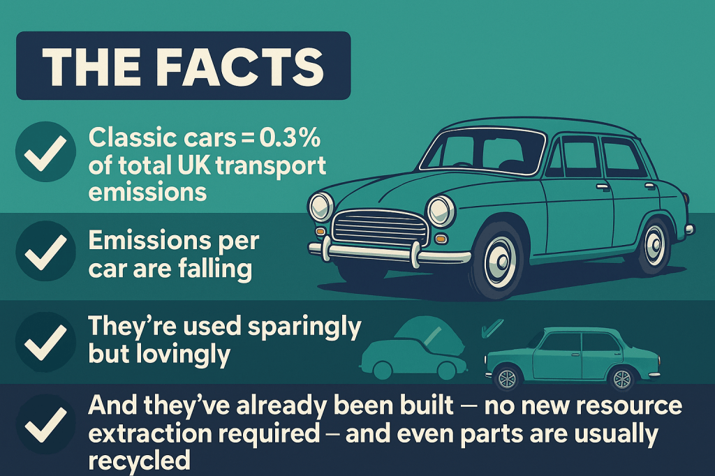 Classics already exist. They’ve already been built. They use recycled and repairable parts. And they account for a microscopic 0.3% of total UK transport emissions. That’s not even a rounding error.