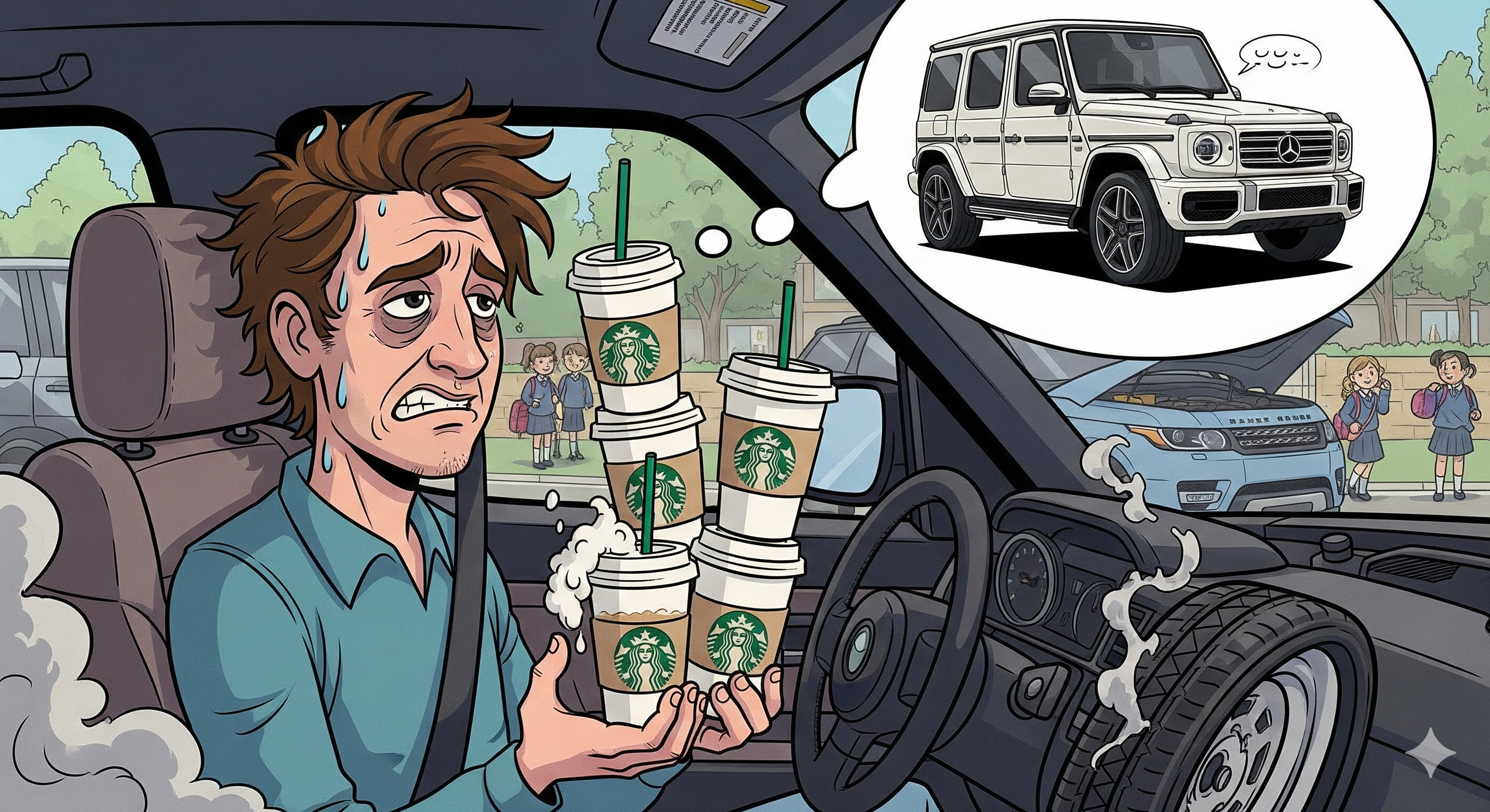 - Range Rover Sport – One school run, four Starbucks lattes, three breakdowns away from buying a G-Wagen.