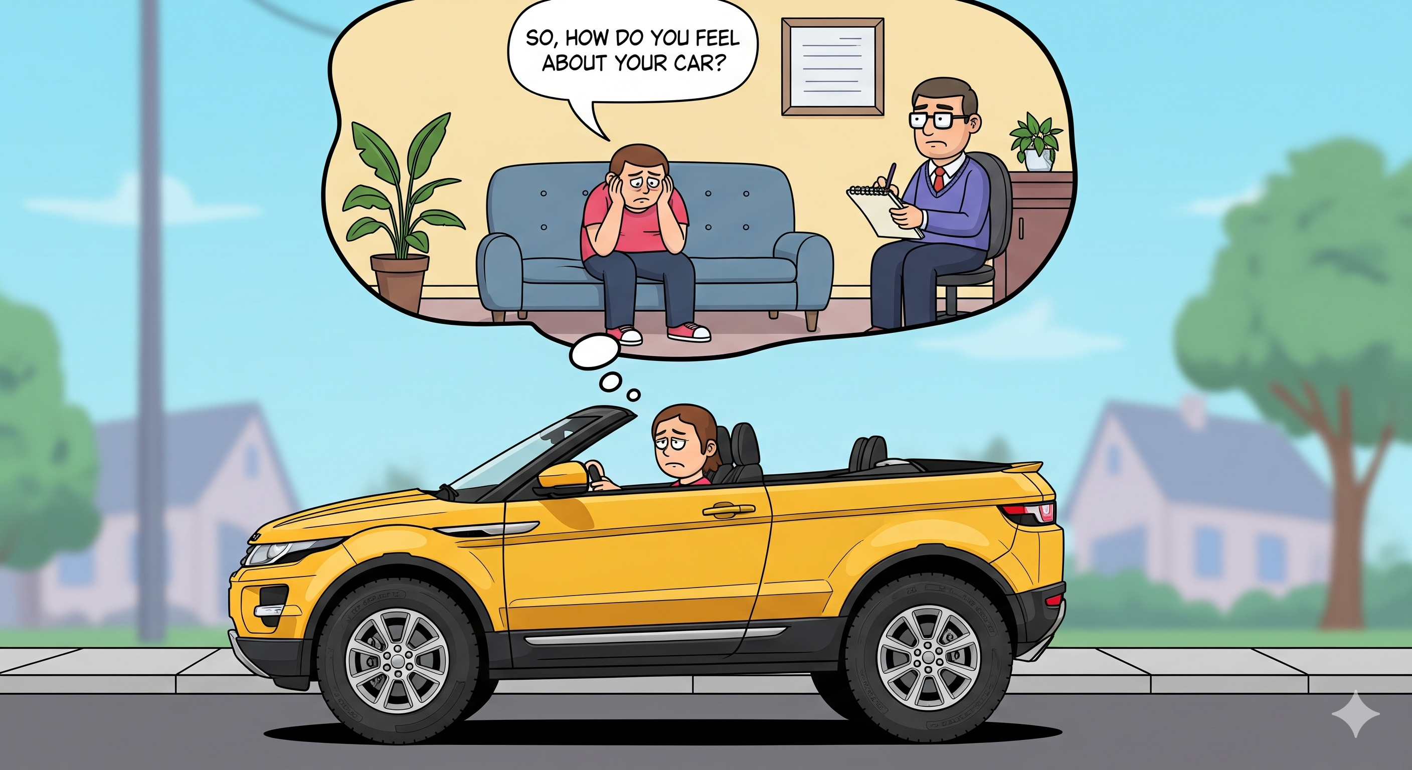 - Range Rover Evoque Convertible – Oh, so you’re the one that bought it. How’s therapy going?