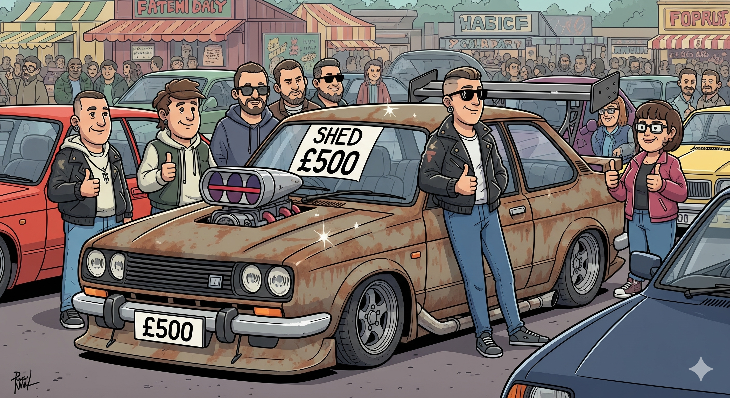 - Take your rusty £500 shed, slap a spoiler on it, and call it art.