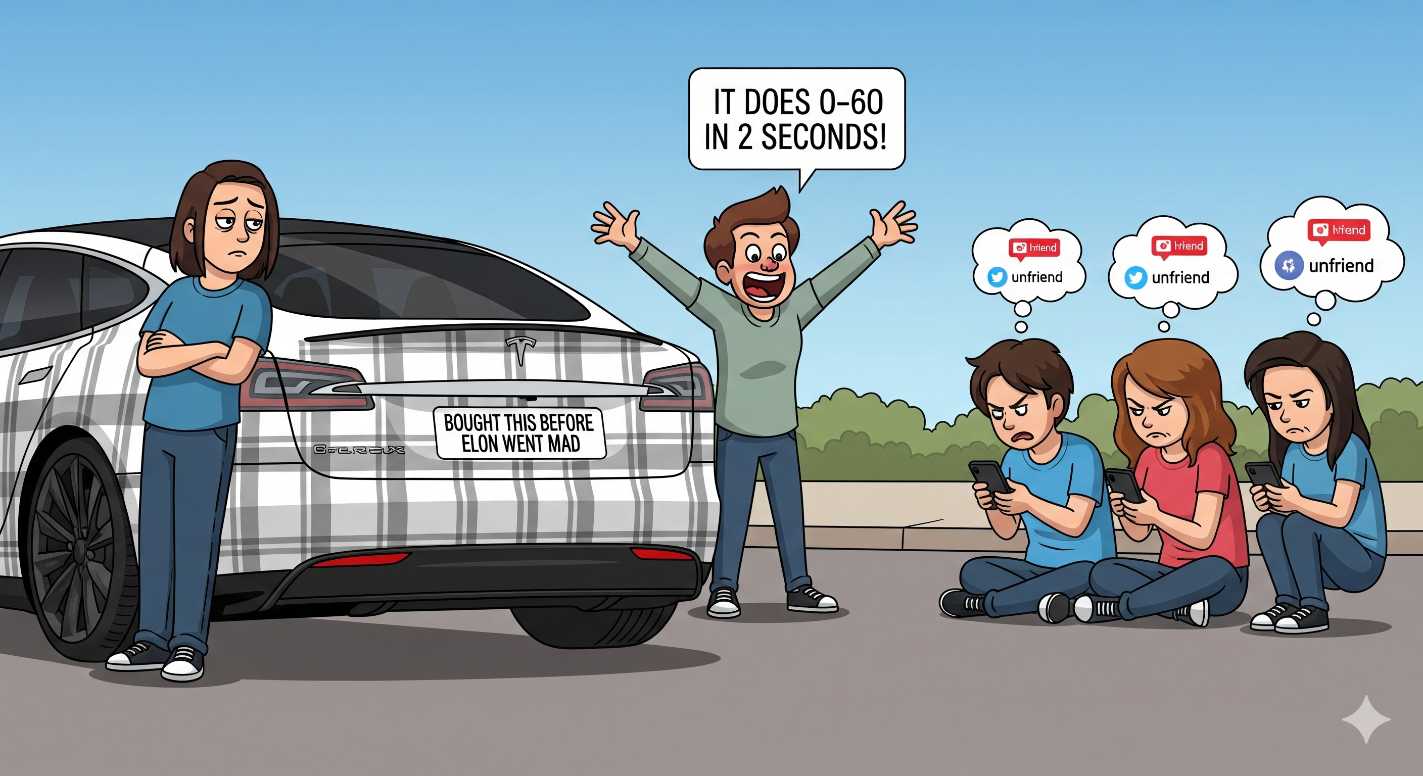 - Green status: Hybrids and EVs are status symbols too – just signalling virtue instead of horsepower. A Prius says: “I’m saving the planet… while hogging this Waitrose charging bay.” Tesla drivers go further. They’re not just eco — they’re convinced they’re living in the future. Every dinner party: “Did I mention my Plaid does 0–60 in two seconds? Also, Elon liked my tweet once.”