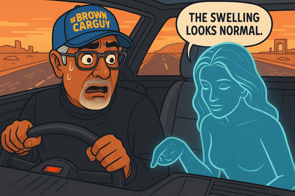 A calm AI voice told me driving would survive, but it felt oddly like being reassured by someone reading the instructions for a Temu lawnmower