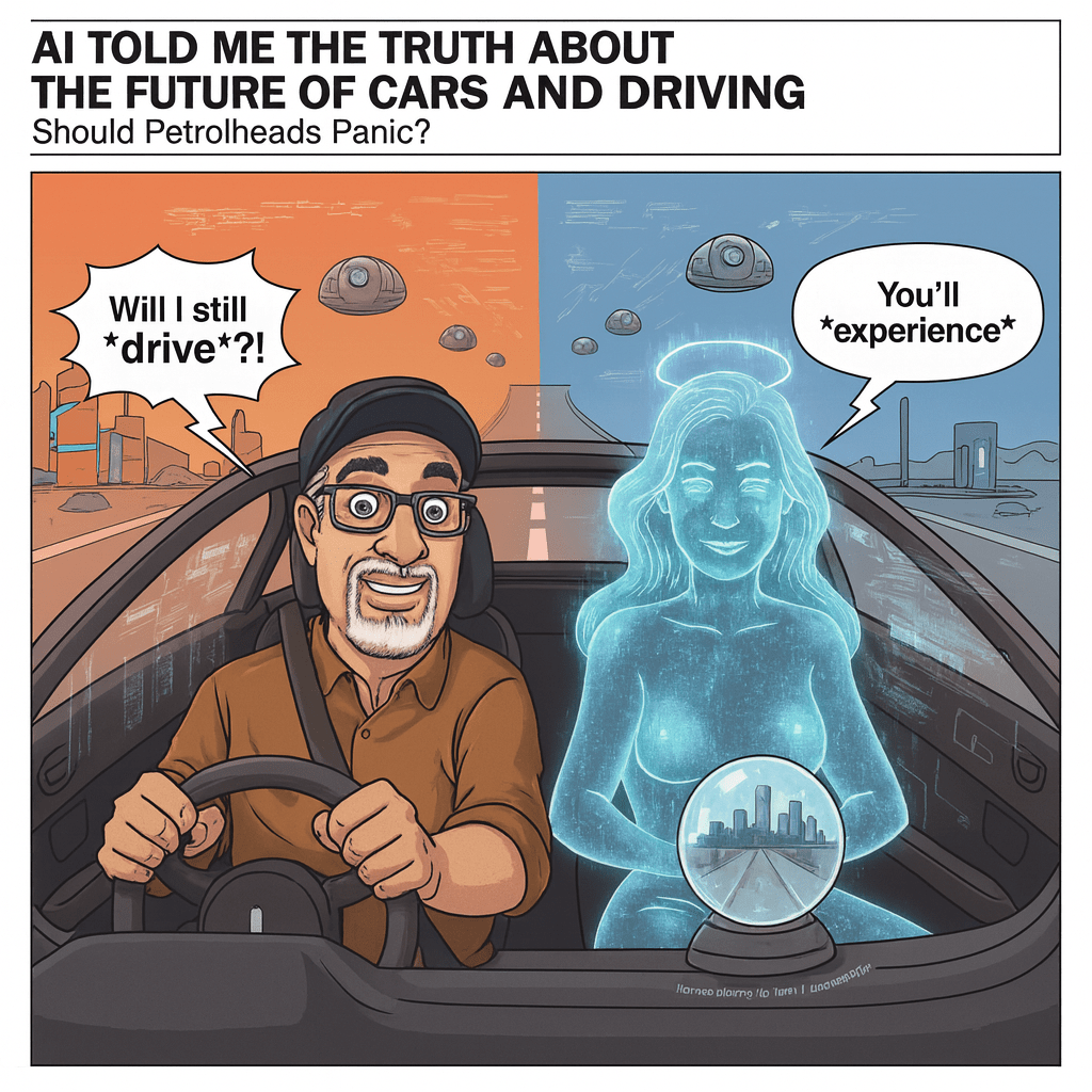 So we started chatting. No, I haven’t lost the plot. Not entirely. Not yet, anyway. I wanted to know exactly what our algorithmic overlords think about the future of driving. Will we still be allowed to steer things ourselves, or will we be strapped in like babies in buggies while robots whisk us away to locations of their choosing? Yes, I said “their”.