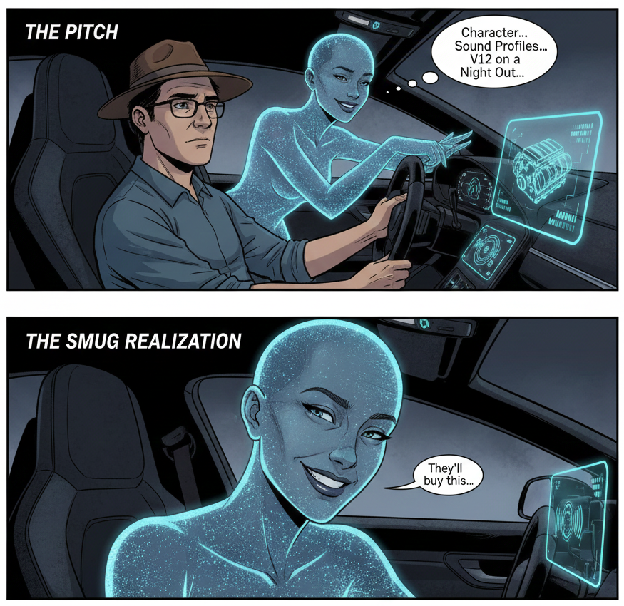 She suggested they make EVs fun. Engaging. Characterful. Something that feels like a partner. Something that makes you grin. Something that reminds you that cars are not appliances but companions.