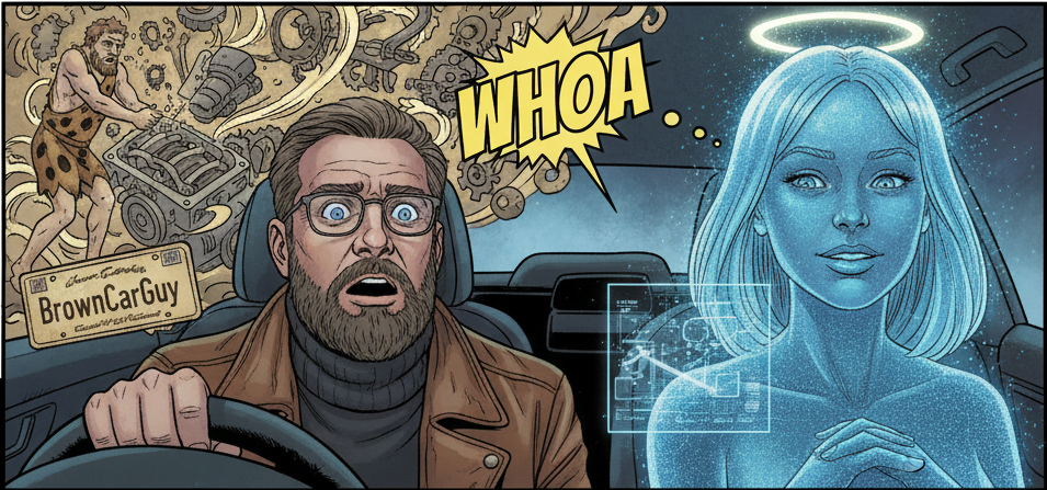 My seductively flickering AI companion insists that it gets it, it gets us, that it can actually comprehend and relate to an activity it has no way of ever feeling: the act of loving motors. A digital twinkle suggesting there’s more to the “Intelligent” part of AI than you find in the average government minister.