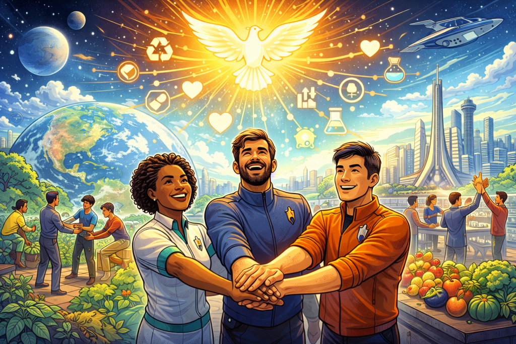 Some look to science fiction for an escape hatch – as I frequently do, and in particular, Star Trek. In the Gene Roddenberry-inspired universe, humanity transcends greed through post-scarcity technology. Replicators eliminate material want. Money becomes obsolete. People pursue meaning, reputation, curiosity, and service.