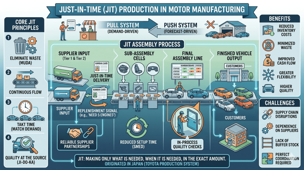 Modern car factories run on a system called just-in-time manufacturing. Rather than storing massive warehouses full of components, manufacturers schedule parts deliveries so they arrive exactly when they are needed on the assembly line. It’s incredibly efficient, but it’s also incredibly fragile.